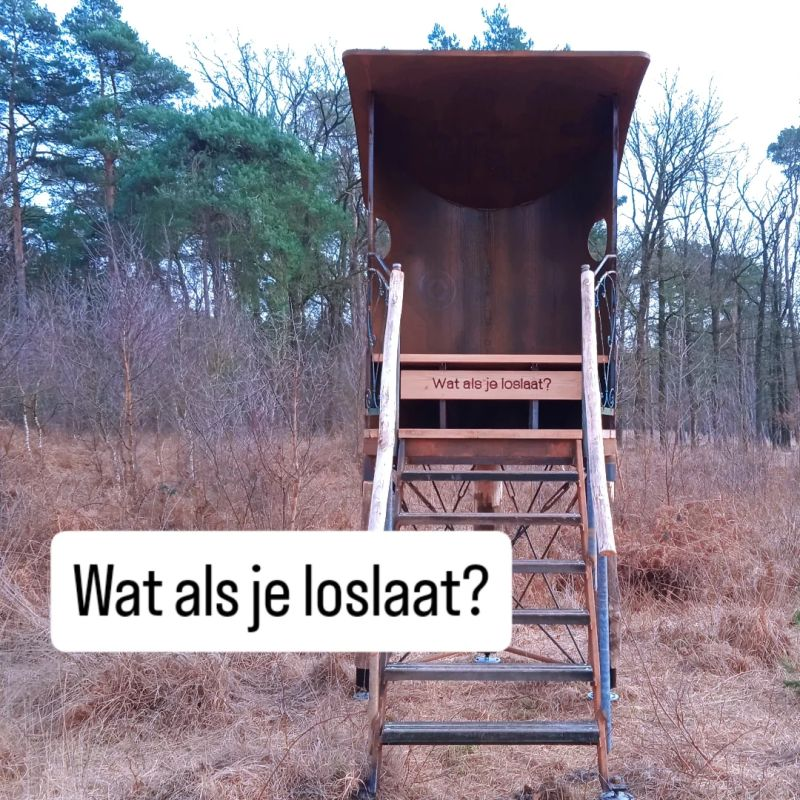 Ik kwam dit prachtige uitkijkplekje tegen. Mooie vraag op de bovenste trede: ‘Wat als je loslaat?